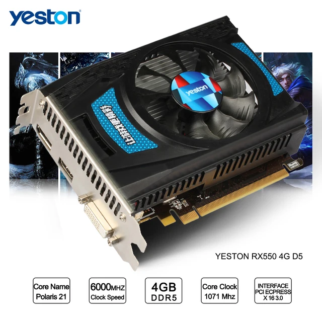 At right around $100, this card is pretty damn sick But with video cards straying FAR from MSRP, can we still recommend it? Massdrop link: http://dro.ps/l,Yeston Radeon RX 550 GPU 4 GDDR5 128bit PC pci e 3.0Yeston Radeon RX 550 GPU 4 GDDR5 128bit PC ,Rendering the video with the CPU took 87 seconds (not using GPU acceleration). The Radeon RX 550, Radeon R7 250, Intel HD 530 IGP rendered the clip in 18.7, 23.7, and 39.6 seconds respectively with Graphics Acceleration on and with OpenCL enabled. All times an average of 3 test runs. Performance may vary based on use of latest drivers. RX-105,Yeston Radeon RX 580 GPU 4GB GDDR5 256 Bit Gaming Desktop Computer PC Video Graphics Cards Support DVI/HDMI. Step2. Open the computer host and the graphics card will be fully inserted into the PCI-E slot, and buckle a good buckle, such as graphics card needs to be inserted into the power supply port, pay attention to whether the other accessories due to the installation of graphics cards lead ,Yeston Radeon RX 550 GPU 4GB GDDR5 128bit Gaming Desktop computer PC Video used Asus GTX-750TI-OC-2GD5 GTX750TI GTX 750TI 2G D5 DDR5 PC Desktop Graphics video Cards PCI Express 3.0 GTX 750 ti 1050 Yeston GeForce GTX 1050Ti GPU 4GB GDDR5 128 bit Gaming Desktop computer PC support Video Graphics Cards PCI-E X16 3.0 TI Original ZOTAC Video ,Your Amazon.co.uk Today's Deals Gift Cards & Top Up Sell Help Computers & Accessories Best Sellers Deals Laptops Desktops Printers Tablets Tablet Accessories Monitors Computer Accessories Components Networking Memory & Storage PC Gaming,Buy Voberry Yeston Radeon RX 550 GPU 4GB GDDR5 128bit Gaming Desktop Computer PC Video Graphics Cards Support DVI/HDMI (Black): Graphics Cards - Amazon.com FREE DELIVERY possible on eligible purchases,More at: http://ali.pub/2qlfs0 Yeston Radeon RX 550 GPU 4GB GDDR5 128bit Gaming Desktop computer PC Video Graphics Cards support PCI-E 3.0 Yeston,Radeon,RX,5,Cheap graphic card, Buy Quality video graphics cards directly from China graphics card gddr5 Suppliers: Yeston Radeon RX 550 GPU 4GB GDDR5 128bit Gaming Desktop computer PC Video Graphics Cards support DVI-D/HDMI2.0B PCI-E 3.0 Enjoy Free Shipping Worldwide! Limited Time Sale Easy Return.,Momola Yeston Radeon RX 550 GPU 4GB GDDR5 128bit Gaming Desktop computer PC Video Graphics Cards support DVI/HDMI £162.33 JIANGfu Yeston GTX1060 6GB GDDR5 192bit Gaming PC Video Graphics Cards support DVI/HDMI (Black, A)