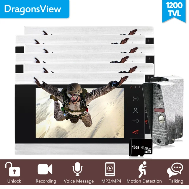Best Value Dragonsview Multi Apartment Video Door Phone Intercom System 1200TVL SD Card Picture/Video Recording Motion Detection Alarm