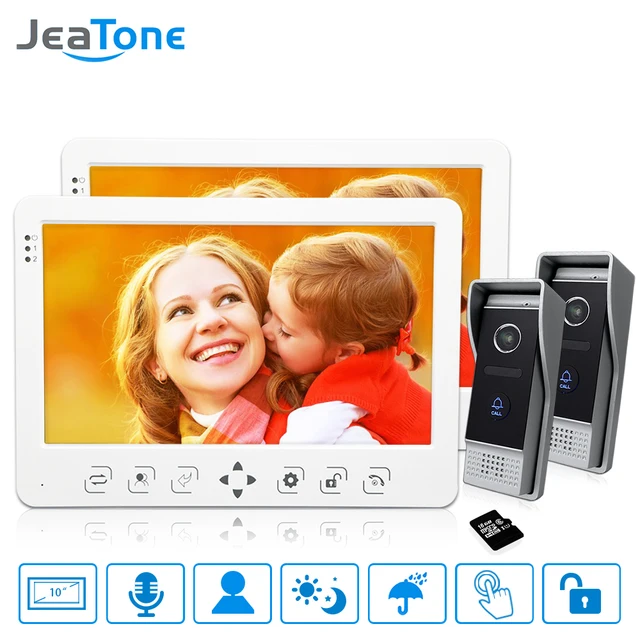 Best Value 10''Video Door Phone Doorbell Intercom System 2*Touch Key Monitor+2* 1200TVL Call Button+16G Card Motion Detection/Voice Message