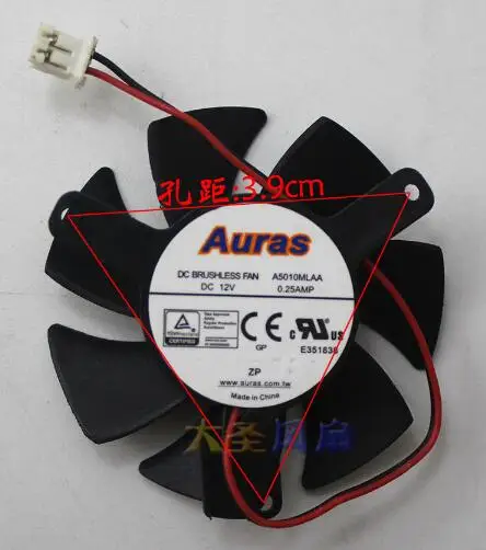 Special Price Original Auras A5010MLAA 12V 0.25A diameter 47MM hole spacing 39MM two-wire graphics card cooling fan