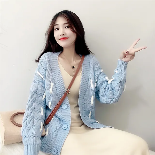 Best Quality Lazy wind loose small fresh sweet sweater knit open jacket